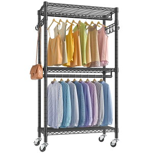 【ハンガーラック 商品サイズ】商品仕様:幅約90×奥行40×高さ195cm(アジャスター含む) ;洋服ラック本体重量(約):9.2kg;全体耐荷重(約):200kg;お客様組み立てが必要な商品です。ワードローブ豊富な収納スペースを備え...