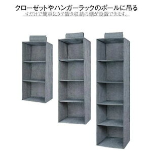 クローゼットやハンガーラックのポールに吊るすだけで簡単にタテ置き収納の棚が設置できます。棚置き式で、出し入れが簡単にでき、シャツやセーター、帽子などの気になる型くずれを防いで収納できます。ポールに巻き付けるだけで簡単