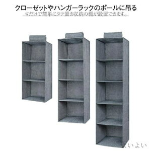 クローゼットやハンガーラックのポールに吊るすだけで簡単にタテ置き収納の棚が設置できます。アップグレードされた生地、洗える、お手入れ簡単適度な柔らかさと硬さを備えた高品質の不織布製使用しないときは折りたたんで保管できる