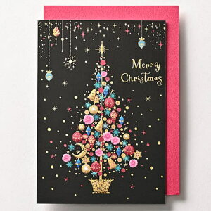 黒の台紙に箔、ラメ、エンボス加工を施した色鮮やかなピンクが映えるツリーデザインのカードです。 ■カードサイズ:100×140mm ■中紙付き