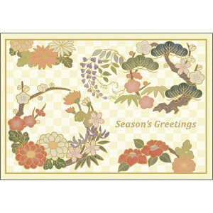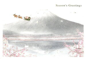 日本の伝統的な図柄を用いた海外にも好評の和風のクリスマスカードです。 緞子(どんす)柄の台紙の上に、浮世絵の木版画が、額装されたようなカードになっております。 扇の透かしが入った中紙が入っており、「Season's...