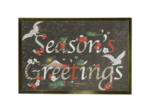 日本の伝統的な図柄を用いた海外にも好評の和風のクリスマスカードです。 緞子(どんす)柄の台紙の上に、浮世絵の木版画が、額装されたようなカードになっております。 扇の透かしが入った中紙が入っており、「Season's...