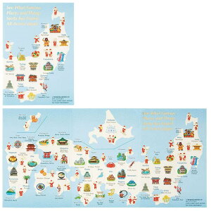 47都道府県の絵柄をめくると、その地方の名産品や名所などの絵柄が見えます。 それぞれの名前は英語で入っています。 思わずすべてめくってみたくなる、楽しさが詰まったカードです。 全面に華やかな金箔加工がほどこされています。 ●