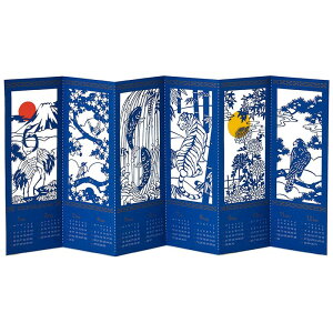 四季の掛け軸風のデザインを、紺色の紙に繊細なレーザーカットで表現したカレンダーカードです。 ジグザグに折ると立てて飾れます。 付属のミニカードにメッセージが書けます。 ●郵送の際は切手をお貼りください。詳しくは日本郵便株