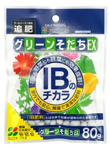 花ごころ IBのチカラ グリーンそだちEX 80g 登録番号:生産第68153号 種類:化成肥料 有効成分:窒素(N)10、リン酸(P)10、カリ(K)10、マグネシウム1....