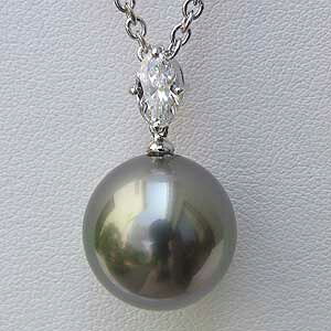 上質な大人の雰囲気漂うタヒチ黒蝶真珠。14ミリのビッグサイズに負けない迫力の大粒マーキスダイヤモンドを1石。シンプルデザインながら存在感たっぷりなペンダントネックレスです。シックでスタイリッシュな一点ものジュエリーです...