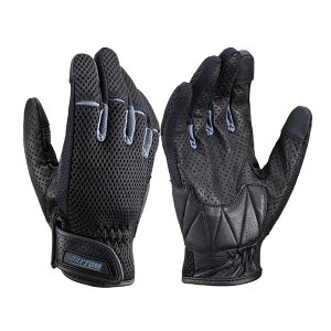 メッシュ+本革で通気性と耐久性を両立させたショート丈の春夏グローブ。手の甲側は通気性に優れたメッシュ素材、手の平側は本革を採用。転倒やグリップによる摩耗を防ぎ耐久性を確保しています。摩耗性に優れるケブラーパッチ付を手の