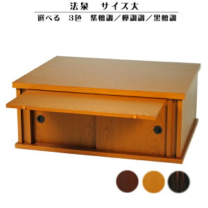高級仏壇台 膳引き付タイプ 光沢感のある高級品です 豪華な引き手細工と渋い木目が重厚感、高級感を演出 選べるカラー、サイズ 黒檀調/紫檀調/ケヤキ調と3サイズをご用意 ■サイズ 小:高さ392mm×幅490mm×奥390mm...