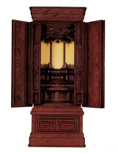 仏壇 唐木仏壇 神島16巾35号 別台。16巾35号: 105×55×46センチ。台:調プリント 軸:調プリント。全国・全宗派で祀られております。