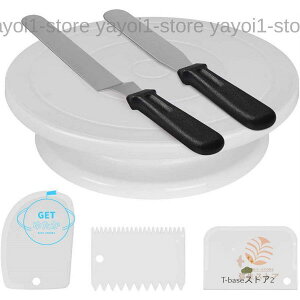 ケーキ作りに欠かせない回転台 、絞り袋、口金、ゴムベラ、スパチュラ、デコレーションヘラをセットにしました。あとは生地の材料を揃えるだけで、ケーキがつくれちゃいます♪ ●製造ロットにより、細部形状の違いや、同色でも色味に
