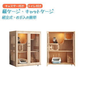 【トイレ一体型キャットケージ】猫ケージ本体にトイレトレイが一体化した設計で、掃除のしやすさと臭い対策を徹底的に追求。多頭飼いの方にもおすすめの、人気でお求めやすい大型モデルです。 【3段構造で広々とし...