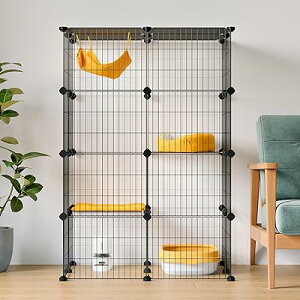 あらゆる家族の信頼に応えます。 大面積鉄メッシュ:この猫用ケージは、子猫が脱出した後ケガや交通事故などのトラブルを防ぎます。安全で快適な休息場所を作り、猫を怪我から守ることができます。ケージは多数の娯楽施設があり、猫の遊び場として...