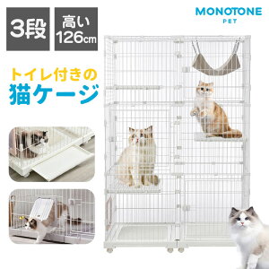 【トイレ一体型キャットケージ】猫ケージ本体にトイレトレイが一体化した設計で、掃除のしやすさと臭い対策を徹底的に追求。多頭飼いの方にもおすすめの、人気でお求めやすい大型モデルです。 【3段構造で広々とし...