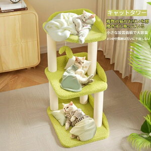 キャットタワー 小型 キャットタワー 据え置き 猫のベッド 三層 天然麻紐 多頭飼い 爪とぎ おもちゃ みどり おしゃれ 省スペース 運動不足解消 高さ70cm猫用品 ベッド 天然サイザル麻 人気 おもちゃ付き