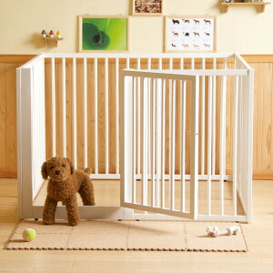 枠だけではなく柵の部分も天然木(ブナ材)を使用したシンプル設計ながら、幅や奥行きもサイズ調整可能な日本製の木製ペットサークルです。扉も奥と手前の両方向に開くことができるので、左右どちらにも扉を配置することができます。カラーはナチュラ...