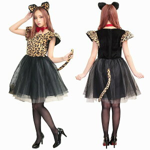 レオパード柄がオシャレな大きな耳とフリフリの袖がポイント。生地は起毛しているので肌触りも滑らか。ワンピースのスカート部分は何層にもチュールが重なりボリューム感があります。インナーを着てジャンパースカートとして着用する