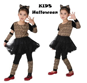 子供 女の子 猫 コスプレ ネコ キッズ コスプレ衣装 仮装 ヒョウ柄 レオパード 猫耳 コスチューム仮装 フレアワンピ 猫耳 ねこ耳 カチューシャ 鈴 カフス付 4点セット キッズコスプレ 可愛い ハロウィン仮装...