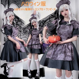 (ワンピース+エプロン+ヘアアクセサリー+リボン)ハロウィンパーティーを盛り上げてくれること間違いなしの一品です♪コスプレが初め
