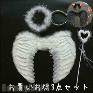 悪魔/天使のコスチューム用小物3点セット。セット内容:羽+カチューシャ+棒本物の羽で出来ているのでとっても本格的!ハロウィン以外にも色々使えます!大人も子供も着用可能! サイズ Mサイズ(3点セット)...