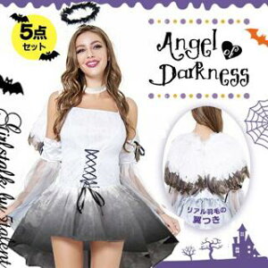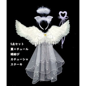 ハロウィン コスチューム キッズ 天使の羽 天使 5点セット 羽根 ウィング 翼 エンジェル コスプレ 小物 Halloween 仮装 イベント 装飾 イベント