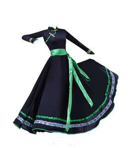 モンゴル 衣装 ダンス レディース きれいめ ワンピース 長袖 大きいサイズ ロング 民族 伝統 パフォーマンス モダン エスニック シンプル 黒素材: スパンデックス