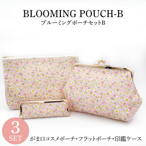 〜セット内容〜 1)印鑑ケース*朱肉付き おしゃれな花柄が特徴の人気のがま口印鑑ケースです。 開閉時に朱肉のフタが自動で開くため、フタを開ける手間を省けます! 2)ティッシュポーチ 小物入れにも便利なティッシュポーチ 背面にポ