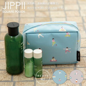商品詳細 POP でユニークなプリントがポイントのポーチができました。 ヨガ柄と温泉柄の2種類で、流行りのサ活にもぴったりです。 しっかりマチがあり、ボトル収納もスムーズです。 内ポケットも充実していて、スキンケアやメイク用品を