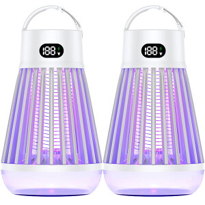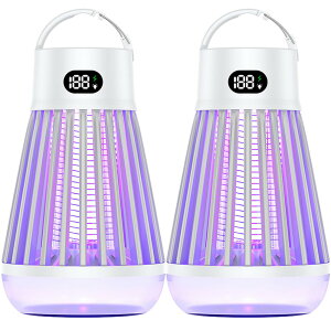 【2点セット】【一台二役:強力蚊除け&照明ランプ】薬剤を使わず、蚊が好む光に集まる習性を利用して、紫外線ライトで誘導。蚊などが内側の高圧電撃ネットに触れると瞬時に感電死させます。照明モードに切り替え可能。内部センサーが