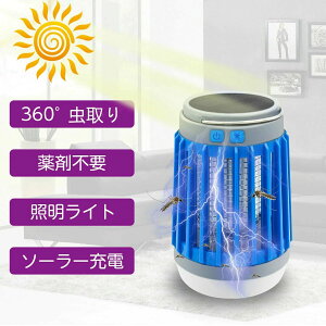 ソーラー充電式蚊取り器 殺虫灯&照明両用 IPX6防水 大容量2000mAh ソーラー充電式&USB充電式 捕虫器 電気蚊取り器 薬剤不用 静音 軽量携帯