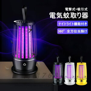 電撃殺虫灯 【UV光源誘引式 360°強力蚊除け LEDライト付き】虫 電撃 殺虫器 電気殺虫機 3600mAh コバエ取り機 電気蚊取り器 蚊駆除 虫除け 殺虫灯 省エネ コバエ 室内 室外 屋内 キャンプ/...
