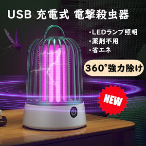 電撃殺虫器コバエ取り 虫除け 捕虫器 電気蚊取り器 殺虫機 LED誘虫灯 LEDランプ照明灯付き 大容量3000mAh USB給電式