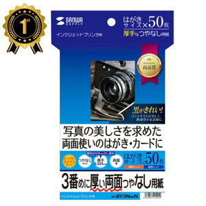 両面印刷ができる、厚手タイプのつやなしマット紙。インクジェット対応の両面印刷紙。はがきサイズ。50枚入り。JP-ERV3NHKN サンワサプライ。激安通販のイーサプライ 16時までのご注文なら最短当日出荷。今なら3,000円以上、送料...