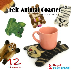 アニマルの敷物風なコースターはシャレが効いていて楽しい!あたたかみのあるネパールウールフェルトで作られ、のんびり寝そべった姿に癒されます。マグカップ用だけでなく、観葉植物用のコスターにしたり、立てかけてそのままインテ