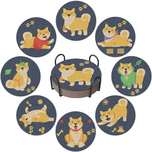 ダイヤモンドアート コースター キット8個入 ビーズアート ダイアモンドアート セット DIYダイヤモンドペインティング 5Dダイヤモンド塗装キット ホルダー付き コースター 手芸キット 初心者、大人...