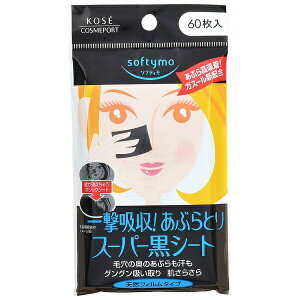 ソフティモ スーパーあぶらとり黒シート 60枚■商品説明■あぶらを吸収するとシートが真っ黒に変わり、ひと目でたっぷりとれたのが実感できます。皮脂テカ・ベタつきもサッパリ、さらさら感が持続します。天然亜麻100%使用。■内容量: