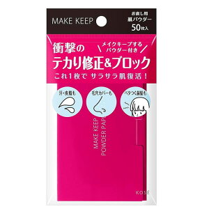 メイクキープするパウダーが付いた紙おしろい 【1枚でテカリをさっと修正!持ち運び・化粧直しに最適なパウダー】 あぶらとり紙にメイクキープするパウダーをコーティング。肌上の余分な皮脂を吸い取り、サラサラでテカらない仕上がりを叶えます...