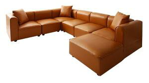 サイズ/約幅196×奥行143×高さ84cm 座面高:約40cm 重量/約57kg 内容量/1台 材質/表面材:レザーファブリック 座面:Sバネ、ウレタンフォーム、ウェービングベルト 種類/キャメル、ダークブラウン<br