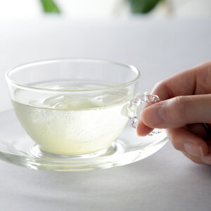 カップ&ソーサー サークル N 持ち手部分はガラス職人が一つ一つ手づくり。おしゃれな耐熱ガラス製カップ&ソーサー シンプルでベーシックなフォルムに、まるでアクセサリーのような「サークル」のモチーフが持ち手として施され、おしゃ