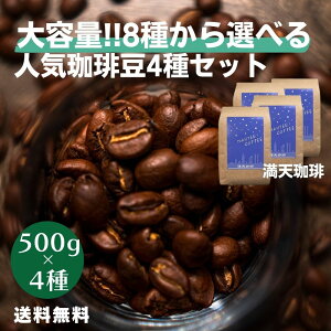 ☆商品到着後レビューご記入の方に 自家焙煎ドリップコーヒー(1杯分)を1個プレゼント!! 満天珈琲が厳選!他店では扱っていない 厳選8種類の珈琲豆からお好きな組み合わせが選べるセット。 あなたのお気に入り4種を各500gお届け致しま
