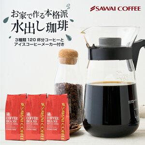 円すい形フィルターはこちらから。 商品説明 ハリオのアイスコーヒーメーカーと澤井珈琲の3種類のコーヒー豆セット。自宅で簡単にプロフェッショナルなアイスコーヒーを楽しむための