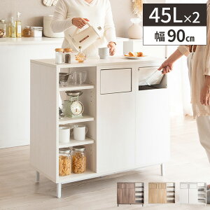 【10%OFF対象】カウンター ダストボックス 幅90cm ゴミ箱 ごみ箱 45リットル 45L 分別 二口 おしゃれ 前ふた付き 蓋つき オシャレ シンプル キッチンカウンター ...