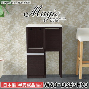 キッチン周りのすきま収納におすすめ!スライドレール付き引き出しmagic レンジ台×作業台 W60×D35×H90 木目。サイズ:約幅600 奥行き350 高さ900 mm。材質[天板・スライド棚]メ...