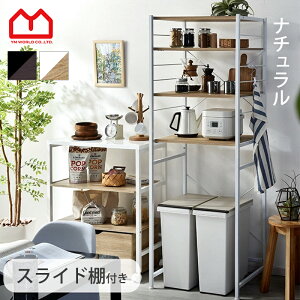 ゴミ箱の上のデッドスペースを有効活用できるキッチンラックMansarda。天板にはレンジを置くことができる他、コンセント付きのスライド棚は炊飯器やケトルなどの家電を収納するのにぴったり。足元のオープンスペースはゴミ箱を収納するだけでな...