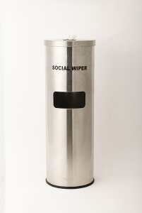 別売りの除菌シート【ソーシャルワイパー】の詰替用が上部よりそのまま出し入れできます。背面から取り出すゴミ箱も付属していま