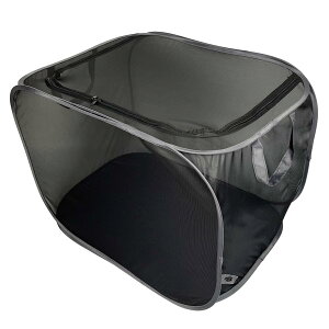 サイズ:幅71.5×奥行45.5×高さ45cm。 重量:1.25kg 材質:ブラック生地/PVC、ポリエステル、メッシュ部/ポリエチレン(防鳥ネット使用)、プラ段/ポリプロピレン、マジックテープ/ナイロン 製造国:中国 カラー:ブラック