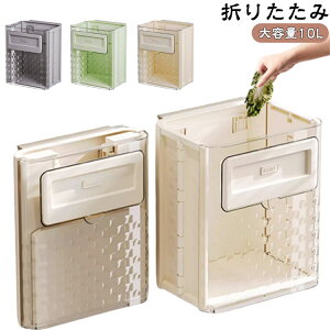 折りたたみ大容量10Lキッチン周りのゴミをまとめて収集できるダストボックス!約10Lの容量があるので、調理中に出る生ゴミやパッケージの箱など、キッチン周りのゴミをまとめて捨てることができます。キッチンの引き出しに取り付けると