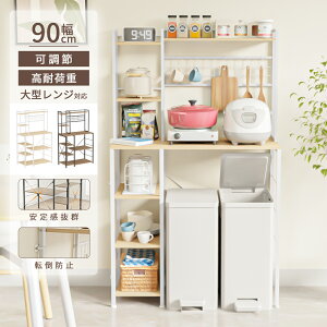 ることで、無駄のないすっきりしたキッチンに。 【3枚可動棚高さ11段調節可能】 7cm間隔で高さを調整できる可動棚なので収納する物に合わせて棚の高さが自由に設置。調味料や家電、キッチン用品をひとまとめにしてとても便利...
