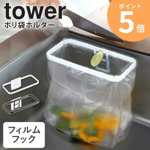 ごみ袋ホルダー ダストボックス フィルムフック 省スペース 台所用品 キッチン雑貨 洗面所 洗面台 トイレ おしゃれ 白 黒 モノトーン YAMAZAKI タワーシリーズ