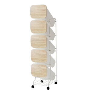 タテ空間を有効に使える、分別ダストボックス。シック&かわいいミックスカラーは、置くだけでキッチンがおしゃれに。幅約31.5cmなのに、約21Lのごみ箱が5個、総容量が約105Lの大容量でしっかり分別。棚の下部にはポリ袋等の保管に便利な...