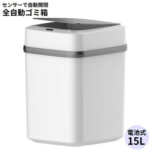 直接触れないから清潔で衛生的♪ 大容量15Lの全自動開閉センサー式ダストボックスです。 フタを閉じる際、ゆっくり閉じて超静音◎ コンセント・充電不要の電池式で、電池を入れずに普通のゴミ箱としても◎ 家庭用はもちろ